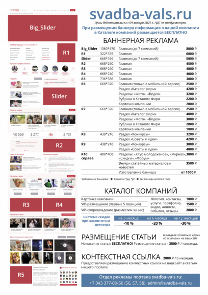 По размещению информации "за вас" пишите: admin@svadba-vals.ru