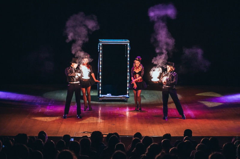 -Акт с метанием ножей в девушку цель -Дуэт с арбалетами •Смертельные трюки Мирового уровня •Единственный в Мире коллектив работающий с четырьмя видами холодного оружия (ножи, топоры, копья, арбалеты).