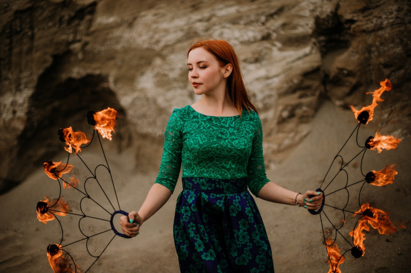 Захватывающее выступление огненно-угольного шоу с пиротехническими спецэффектами.