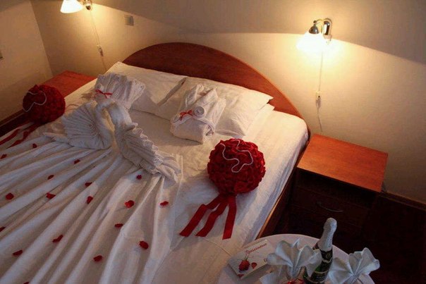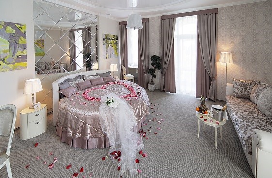 2. Романтичности. Номер для первой брачной ночи переполнен атмосферой романтики и любви. В таких местах есть ароматические свечи и другие атрибуты;