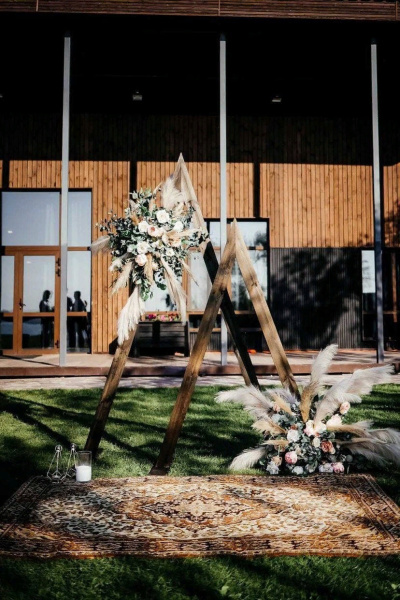 1) Оформлением президиума молодоженов