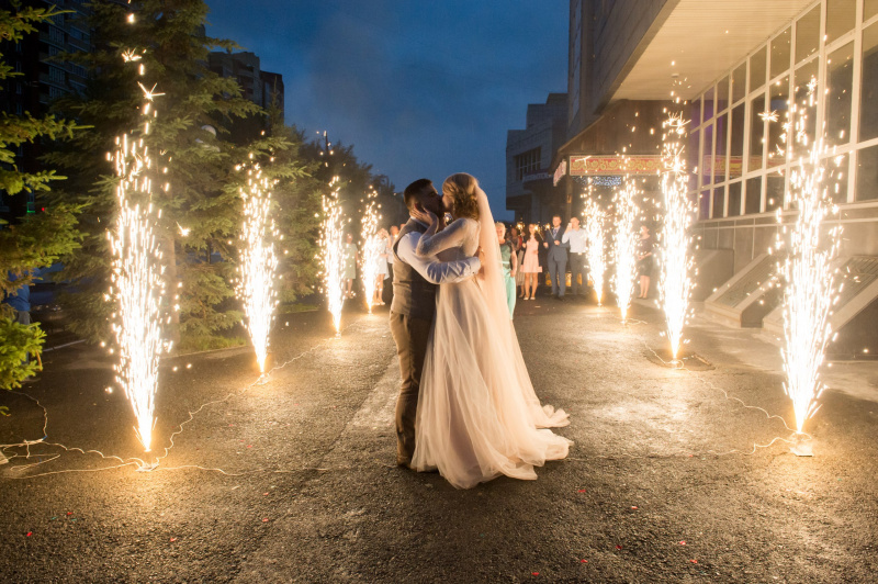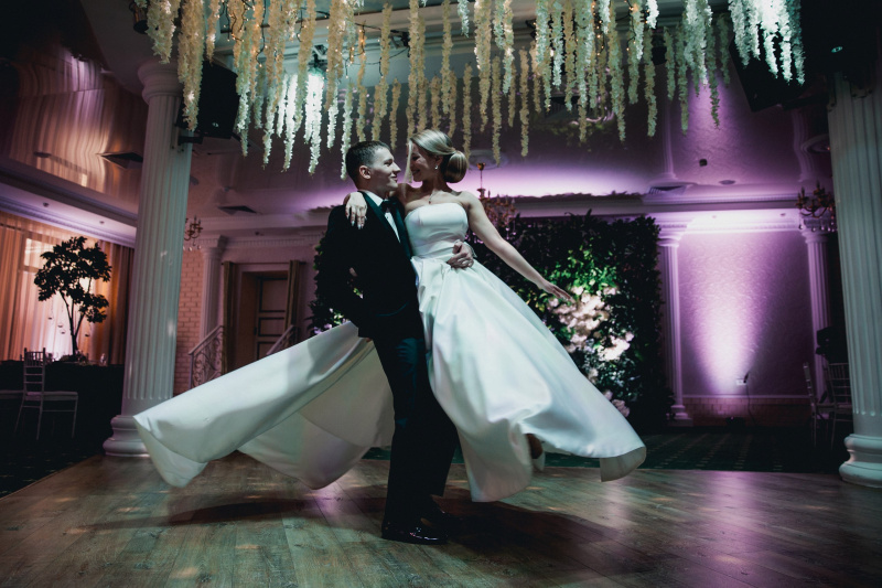 свет, декорации, танцпол (dance floor), музыкальное оборудование, текстиль, флористика, мебель, персонализация каждой пары, candy bar, торт, полиграфия.