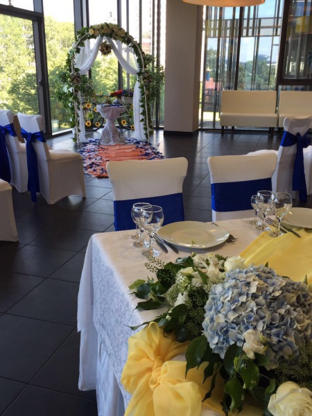 Двухэтажный просторный ресторан БониМария Организация и проведение мероприятий любого формата: свадьбы, банкеты, юбилеи, фуршеты Два роскошных и светлых зала на 150 и 60 человек. Летняя терраса позволяет провести выездную регистрацию бракосочетания на свежем воздухе в окружении благоухающих цветов/