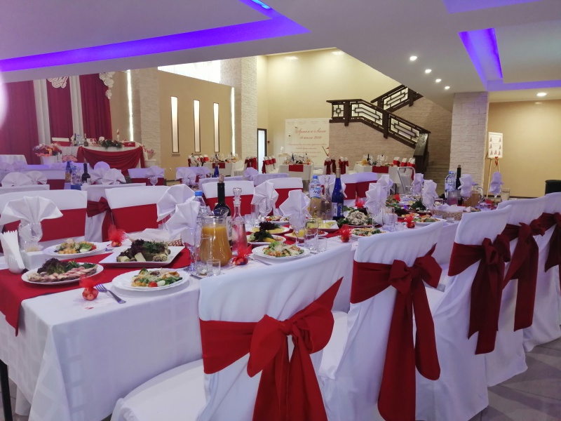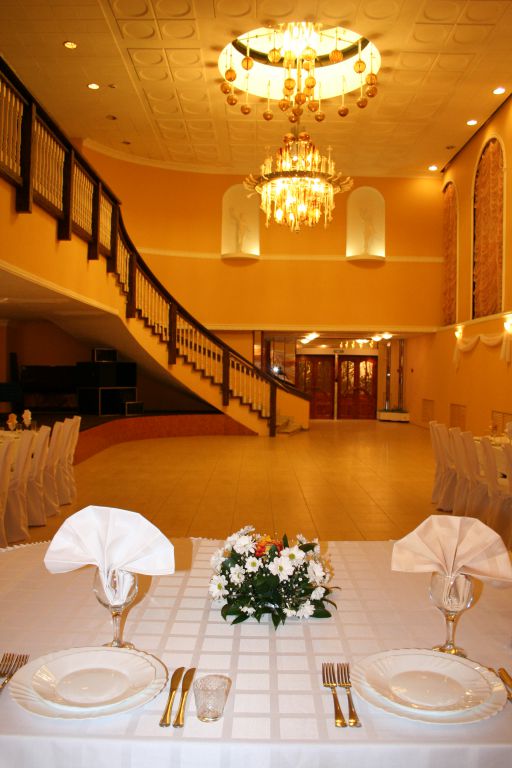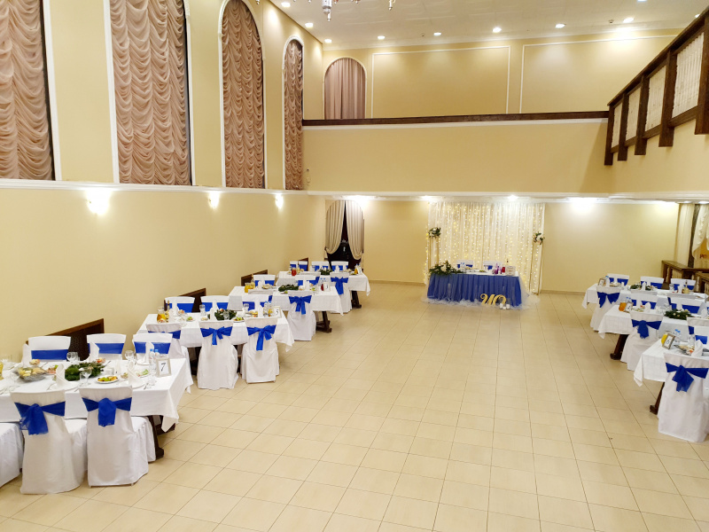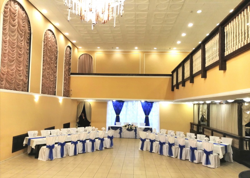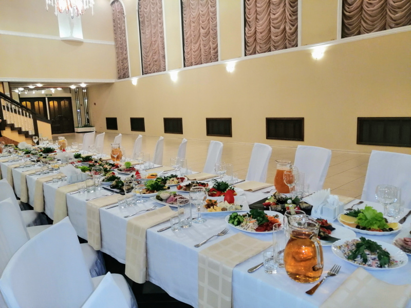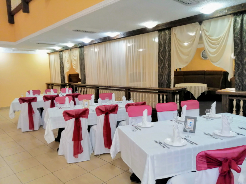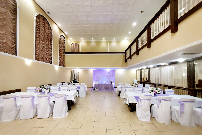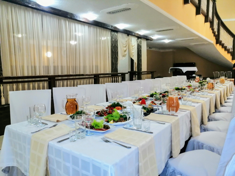 Для проведения торжественных мероприятий предлагает три банкетных зала, вместимостью от 20 до 250 персон, позволяют проводить любые мероприятия на высшем уровне! Индивидуальный подход к каждому клиенту, помощь в оформлении зала и многое другое оставят приятное впечатление, как о самом мероприятии, так и о его организации.