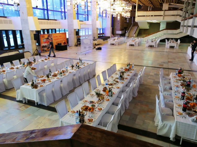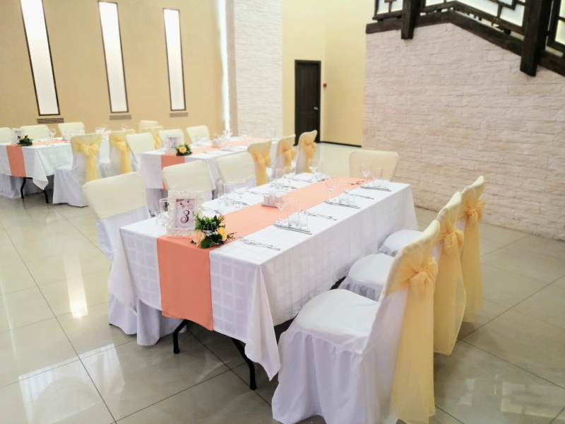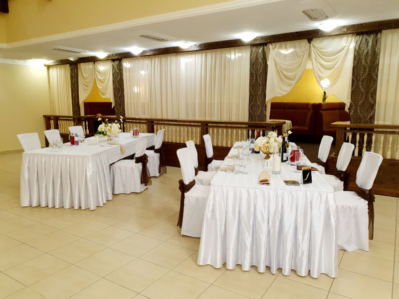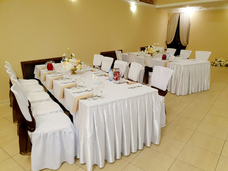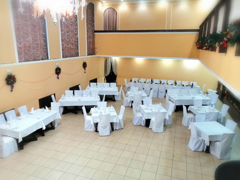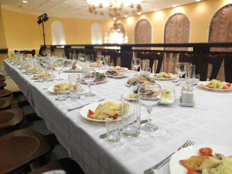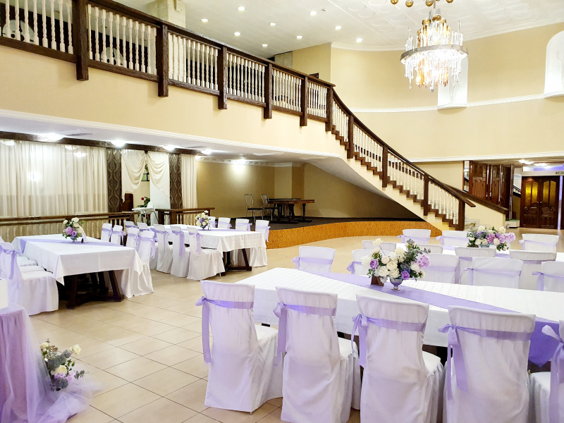 Для проведения торжественных мероприятий предлагает три банкетных зала, вместимостью от 20 до 250 персон, позволяют проводить любые мероприятия на высшем уровне! Индивидуальный подход к каждому клиенту, помощь в оформлении зала и многое другое оставят приятное впечатление, как о самом мероприятии, так и о его организации.