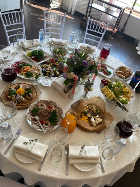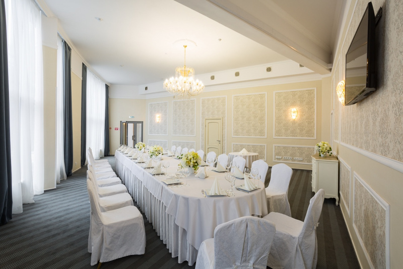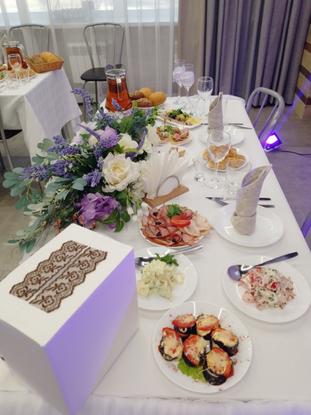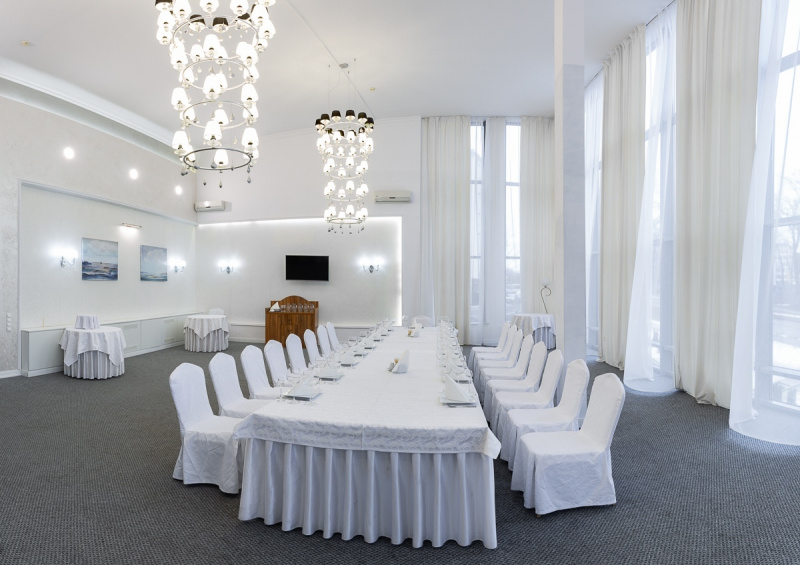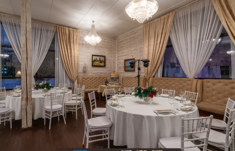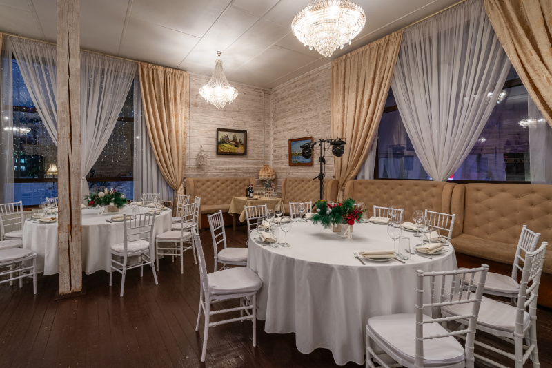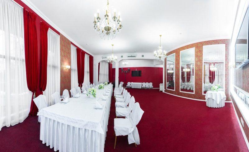 Два просторных банкетных зала на 60 и 150 чел. Место для выездной регистрации Welcome-зона Бесплатная уличная парковка Удобное зонирование пространства банкетного зала идеально подходит для проведения свадебных торжеств и выездных регистраций, корпоративных праздников и деловых мероприятий.